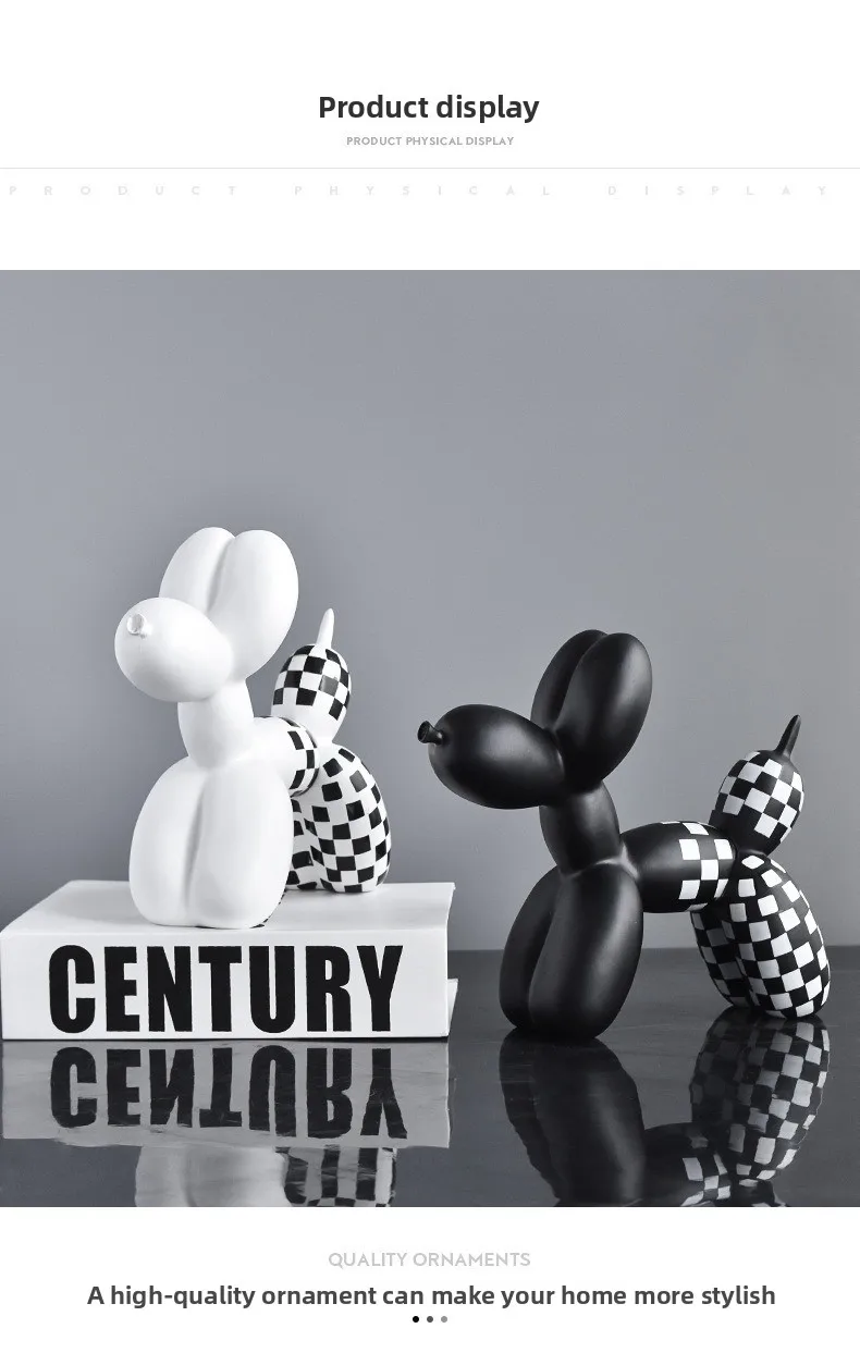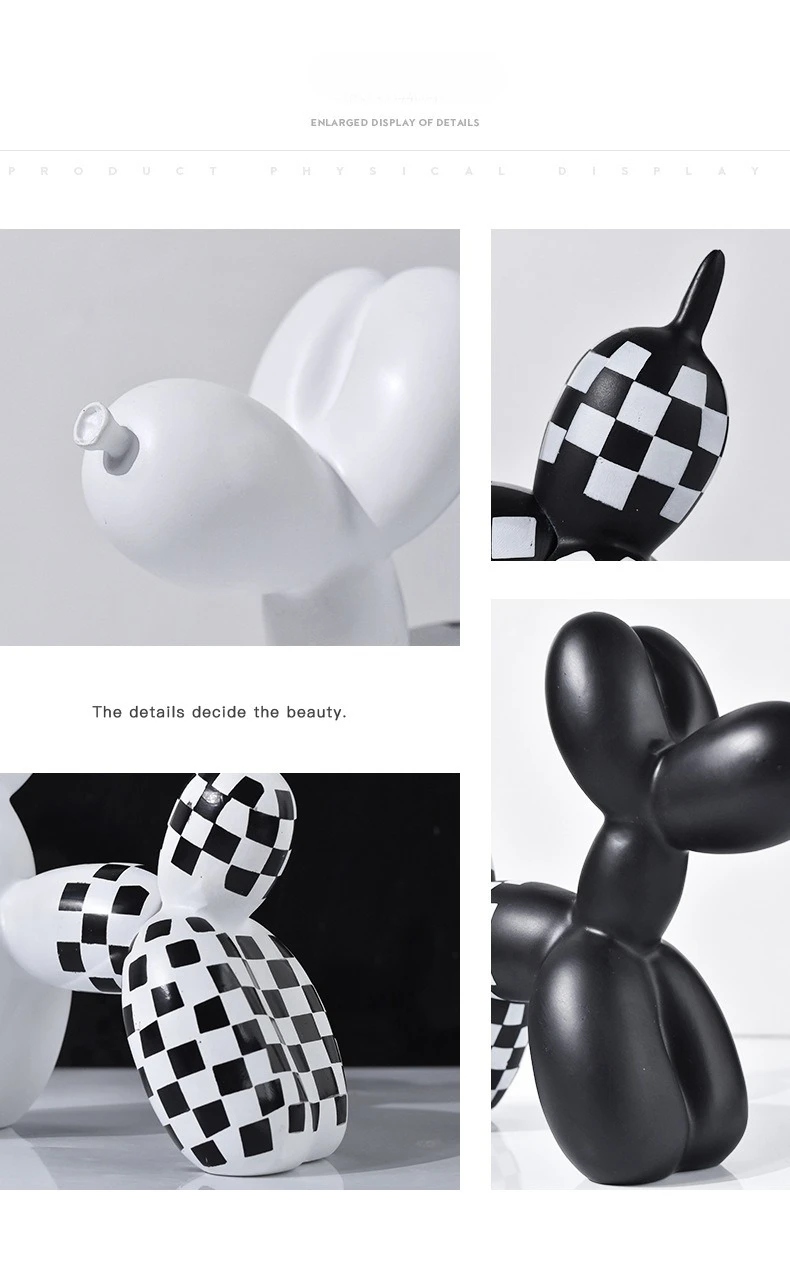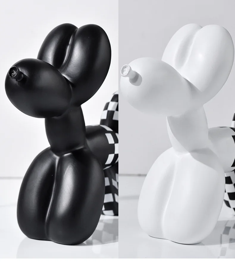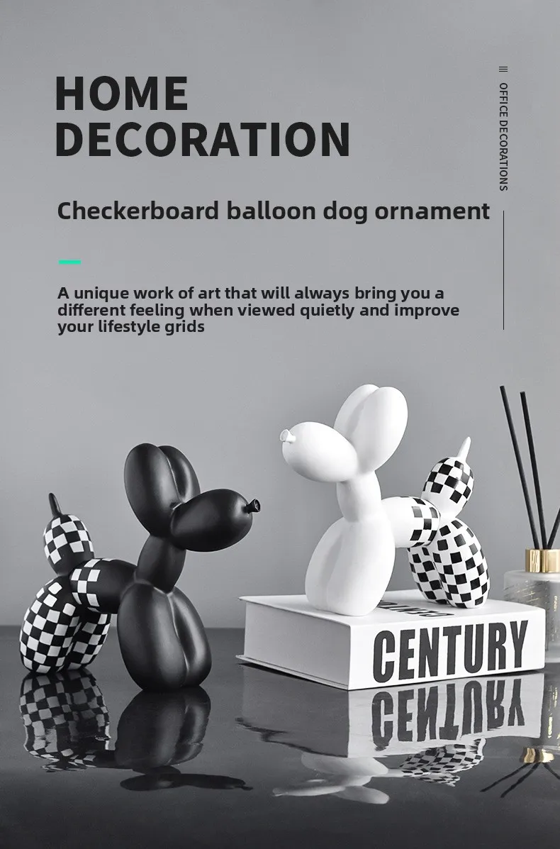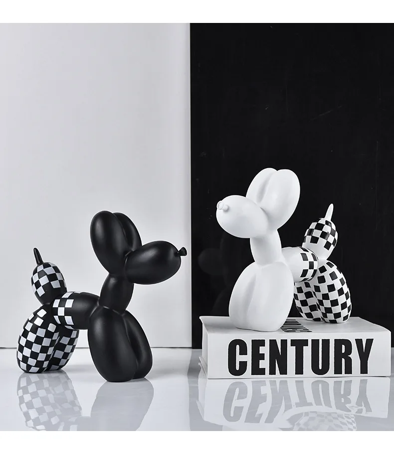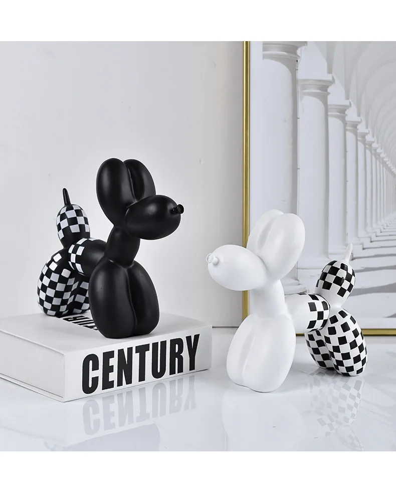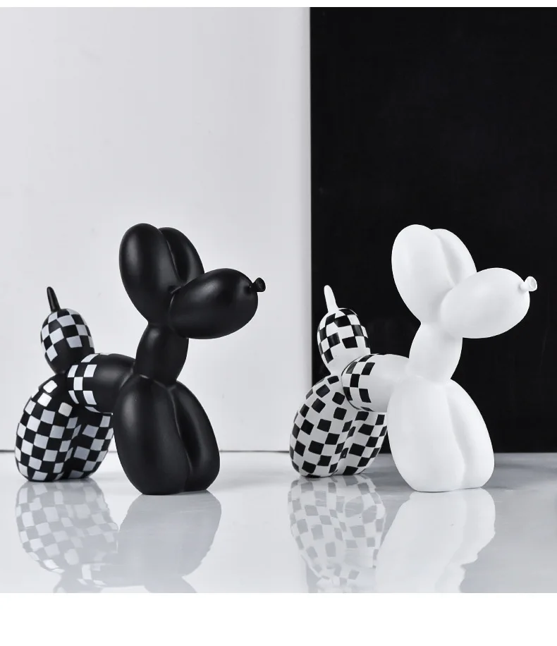 Black and white checkered balloon dog figurine, home soft decoration, living room and entrance decoration, resin handicraft